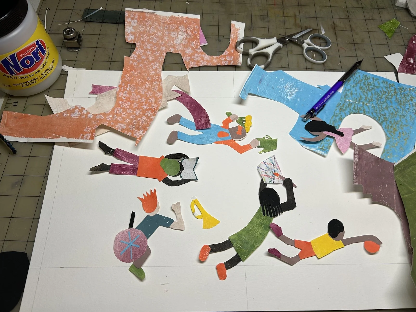 At the Walter Anderson Museum of Art in Ocean Springs, MS, I combined Sense of Place with classic literature in a week long camp. Fourth and fifth graders studied the travails of Odysseus along with maps of the Mediterranean Sea and the Gulf of Mexico to create their own brilliant adaptation set in the modern day Gulf, using shadow puppets on the overhead projector and sound effects. They also created paper mosaics inspired by the work of Walter Anderson, and weaving - both arts practiced by the ancient Greeks. This was so much fun I brought the cardboard boat I had planned to leave in a recycle bin in Ocean Springs, back home and can’t wait to find a place to do the project again!